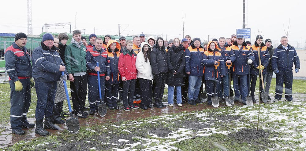 Эта масштабная акция стартовала с высадки деревьев в Орше и Калинковичах. В Орше аллею с кленами и рябинами заложили на улице Пограничной, рядом с административным зданием, где располагается Линейный центр транспортного обслуживания «Орша». В акции приняли участие работники предприятий железнодорожного узла, в том числе члены БРСМ, а также ветераны отрасли.