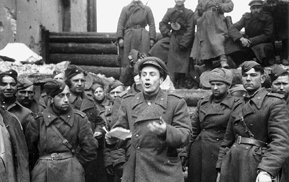 Долматовский читает стихи красноармейцам