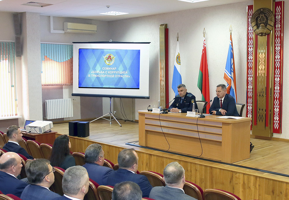 Семинар по вопросам противодействия коррупции в транспортной отрасли прошел под руководством министра транспорта и коммуникаций Алексея Ляхновича. Встреча состоялась в Минском вагонном участке Минского отделения БЖД. Перед руководителями организаций системы Минтранса выступил представитель Генпрокуратуры Артем Маймусов.