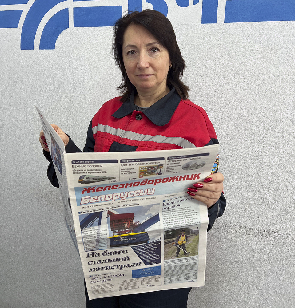 – На нашей станции внимательно читают и выписывают «Железнодорожник…». Это позволяет быть в курсе всех новостей Белорусской магистрали. А как приятно видеть на страницах газеты имена и фотографии коллег! Также большой интерес вызывают исторические материалы, статьи о ветеранах и династиях, зарисовки о молодых специалистах и тех, кто побеждает в дорожных конкурсах, занимается техническим творчеством, разрабатывает и предлагает свои инициативы. Привлекает внимание рубрика «Теперь – я железнодорожник!», так как мнение молодых, их цели важны для дальнейшего развития отрасли. Ну и вспоминаю, конечно, какими были мои первые дни на стальной магистрали, как вливалась в коллектив и училась у старших коллег.