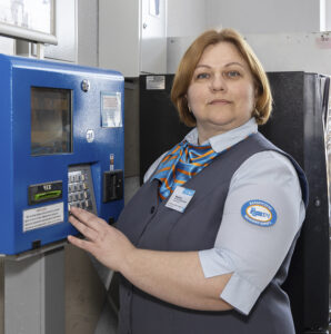 Всегда с улыбкой встречает жителей поселка и гостей билетный кассир 6-го разряда Наталья Миронова. Работа на магистрали стала для нее неожиданным жизненным поворотом, ведь изначально решила пойти в сферу торговли и несколько лет трудилась продавцом-кассиром.